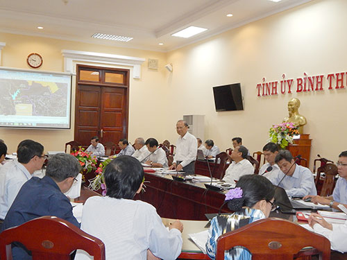 Tại cuộc họp, Tỉnh ủy, UBND tỉnh đề xuất những giải pháp cấp bách giải quyết tình hình khô hạn, thiếu nước sinh hoạt trên địa bàn huyện Hàm Tân. Tỉnh ủy, UBND tỉnh cơ bản thống nhất một số giải pháp ứng phó với tình hình hạn hán, giải quyết nguồn nước sinh hoạt của huyện Hàm Tân, đồng thời đề nghị các ngành chuyên môn tiếp tục rà soát đề nghị của huyện để nhanh chóng triển khai. Phát biểu kết luận tại cuộc họp, Bí thư Tỉnh ủy đánh giá: Chủ trương phòng chống hạn, giải quyết nguồn nước sinh hoạt cho người dân được Tỉnh ủy, HĐND, UBND tỉnh triển khai từ rất sớm. Trước diễn biến bất lợi thời tiết và tình hình khô hạn, thiếu nước sinh hoạt cấp bách, ngay từ đầu mùa khô cho thấy các cấp, ngành, địa phương chuẩn bị ứng phó chưa thật sự quyết liệt từ đầu năm, còn lúng túng trong tổ chức thực hiện theo chỉ đạo của tỉnh. Giải pháp trước mắt, Bí thư Tỉnh ủy đề nghị cần đẩy mạnh tuyên truyền, vận động cộng đồng dân cư khắc phục hạn hán, thiếu nước sinh hoạt. Từ đó, nâng cao ý thức người dân tự giải quyết nguồn nước bằng cách xây hồ trữ nước, nâng đập, làm kênh dẫn nước. UBND tỉnh chỉ đạo các ngành chức năng, địa phương nhanh chóng khảo sát tình hình khô hạn các địa phương trong tỉnh để có cách ứng phó; đồng thời triển khai các biện pháp chống hạn mùa khô hạn năm sau.